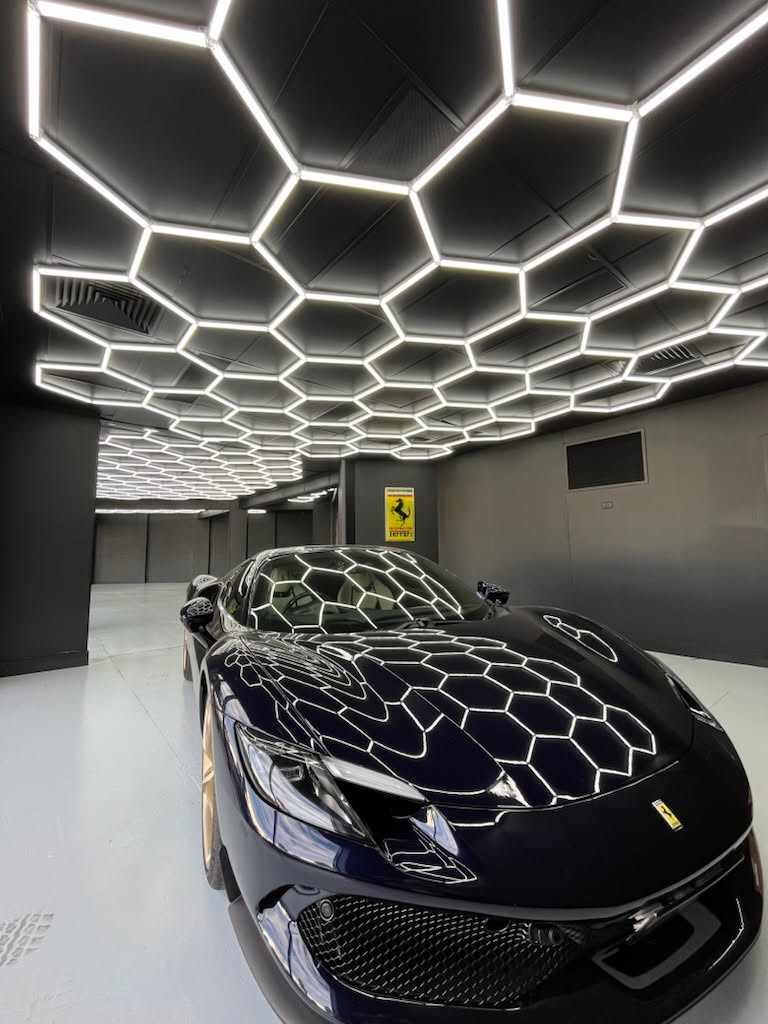 1. LED Garage Lights Embrace energy-efficient and long-lasting LED lighting. Choose from classic strip lights or trendy hexagon garage lighting panels for a modern touch.