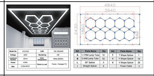 View full detailsHEX LIGHTS 3.2M x 3.6M Hexagon 20 x Grid Versatile light garage, showroom, salon LED Lights ATL48 AUSTRALIAN CERTIFIED